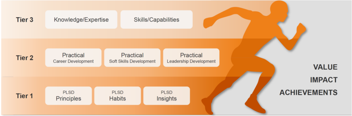 PLSD (Practical Learning & Skills Development) 由职业发展与领导力进阶领域专家Larry Wang先生设计并实践,核心为如何驱动并管理自己的能力提升与发展,从而更好地利用资源和机会,带领团队做出更大的贡献。PLSD的基层要素为强调自我觉醒与主观能动性的PLSD Principles,强调多问多想多参与从而主动学习发展的PLSD Habits,以及强调卓越心态与深入洞察的PLSD Insights。在此之上,PLSD设计并包含三大模块的实用技能提升工作坊及多元的能力发展教学形式,适应中国职场环境,极大程度提高学员驱动并管理自己职业发展的能力,人际沟通问题解决战略思考等关键软技能,及团队管理下属激励驱动变革等领导力进阶技能。
