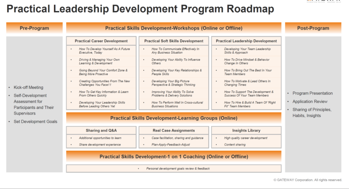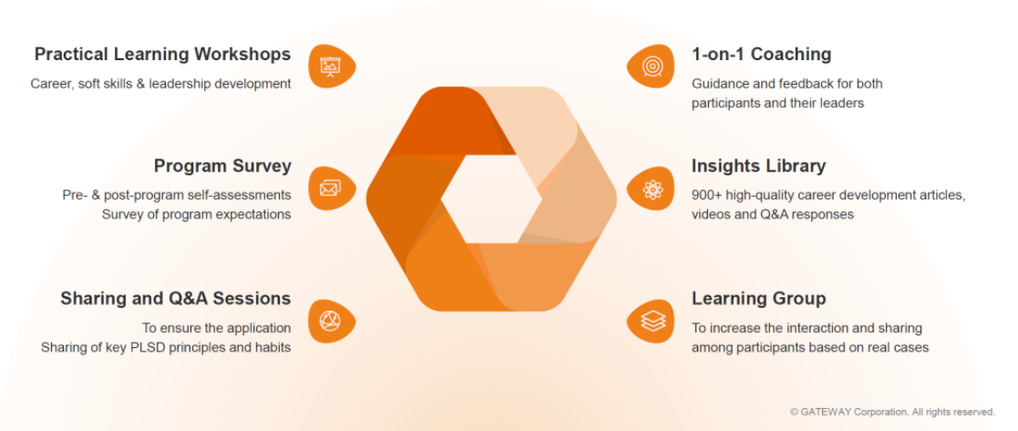 GATEWAY与PLSD (Practical Learning & Skills Development) 的设计者Larry Wang先生建立战略伙伴关系,共同推出基于PLSD的实用领导力发展项目,该项目作为面向企业中层领导者的全面解决方案,将专注于提高团队管理者的核心软技能,建立成功的团队管理模式,提升职业发展意识与自我发展心态,从而更好地支持团队成员的职业发展与技能提升,发挥团队优势不断迎接新的挑战。
