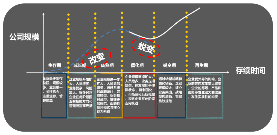 组织发展在不同阶段面临的问题不同,思路不同。VUCA时代下,90%的企业、组织都会面临着组织力不足的挑战,在生存期招人是重要的事情,成长期随着人数增多,业务复杂,风险也会增大,这时容易发生管理混乱的问题,所以管理需要逐渐规范化。经历过快速增长期后,成熟期会相对稳定,这时战略性盈利的核心业务能力形成。如果在之后的组织僵化期内,企业没有积极性去面对,那这时候组织发展模型就起到了至关重要的作用。组织发展从核心高管团队入手,从改变文化开始,带动其他系统的变化(战略、流程、绩效及员工),同时,在组织的三个关键层面改变人员状态(总裁、团队、全员),随着人员状态提升进而改变各个系统。总之,用OD思维,站出部门看组织,最终带领团队蜕变。